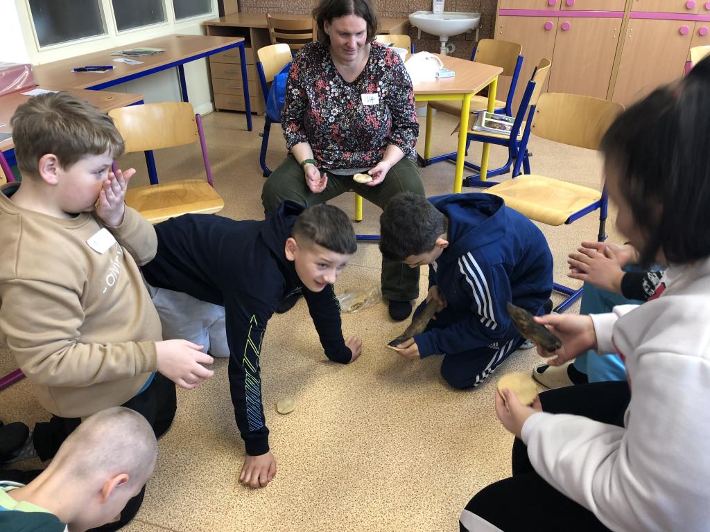 Žáci se hravou formou seznámili s životem v lese. Naučili se, jakým způsobem můžeme zvířata lesa rozlišit a jak je rozdělujeme podle toho, kde žijí. Do těsta si potom vytlačili stopu divokého zvířete.