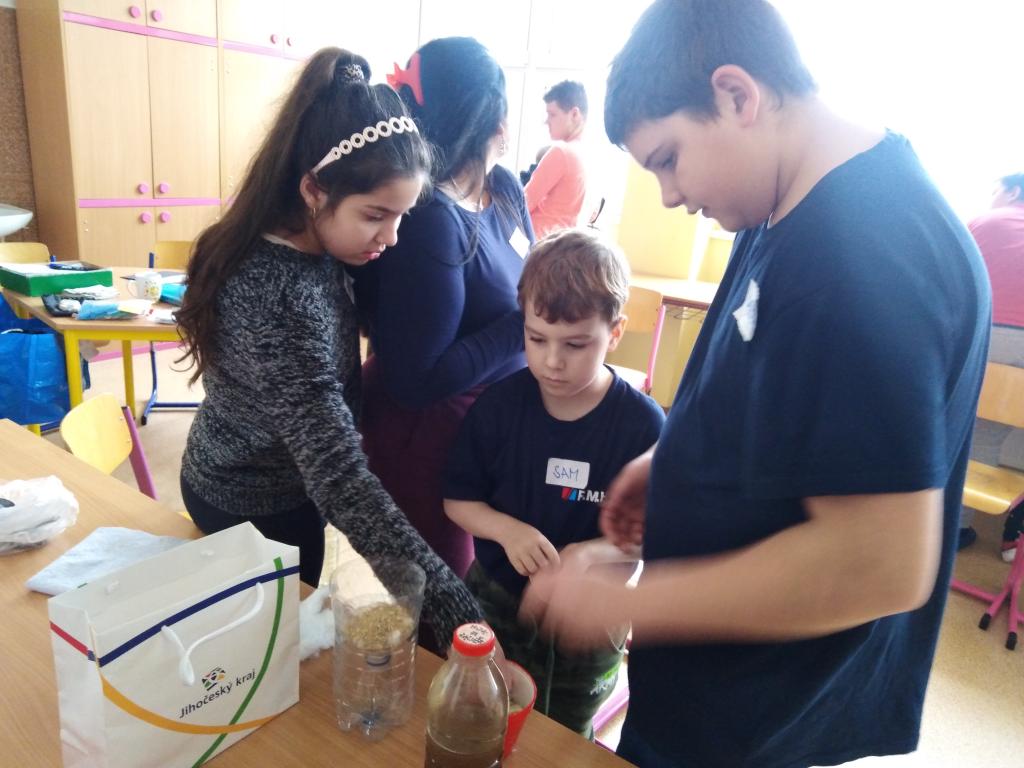 Ve středu 28. 2. na naši školu opět zavítala skvělá Iva Sonenbergerová. S dětmi si povídala o důležitosti vody a o tom, jak s vodou neplýtvat. Přinesla si spoustu zajímavých pomůcek a děti si vyzkoušely zábavné pokusy. Například pomocí vaty, písku a kamení filtrovaly vodu z potoka a z rybníka. Potom pozorovaly vodu pod mikroskopem.
