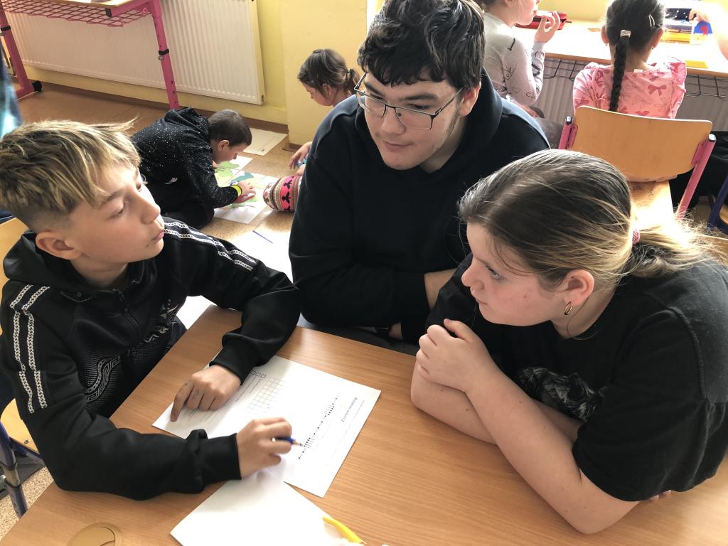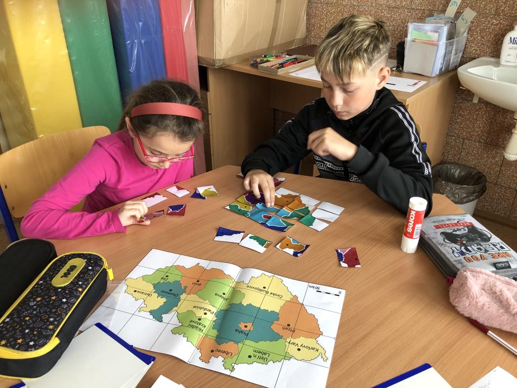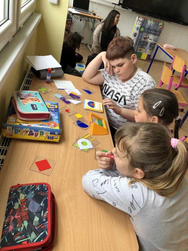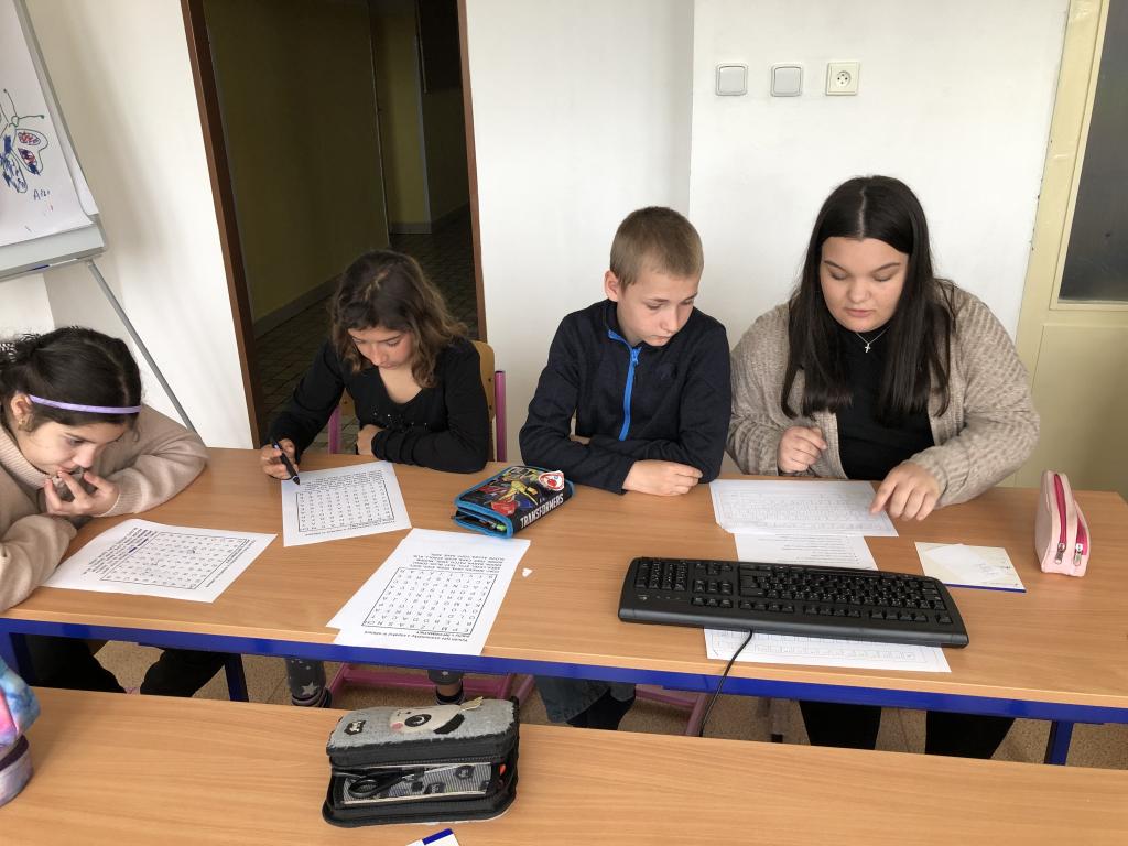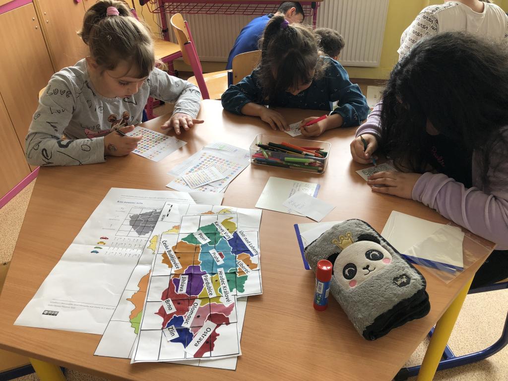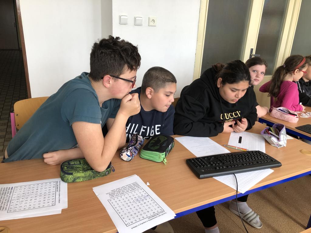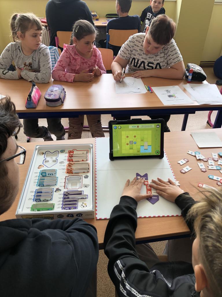 Na začátku jsme si se žáky zopakovali základy bezpečnosti na síti. Dále jsme pomocí pracovních listů vyhledávali jednotlivé klávesy podle jejich funkcí. Další část se týkala algoritmizace a programování. Žáci programovali jeden druhého pomocí příkazů vpravo, vlevo, dopředu a dozadu. Hravou formou programovali i robota BlueBota, který projížděl mapou ČR, a žáci určovali, do kterého kraje BlueBot doputoval. Ve skupinách si vyrobili roboty z krabic, kteří se velmi vydařili.