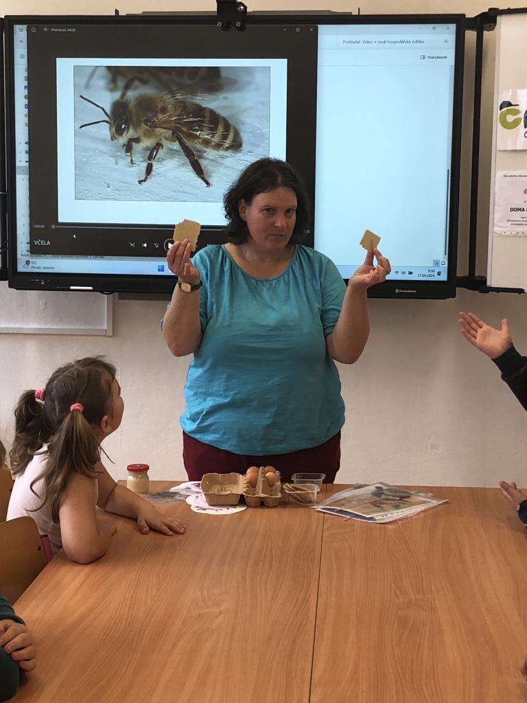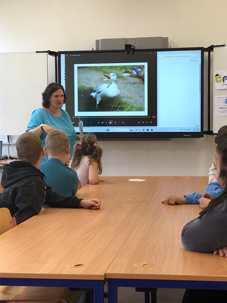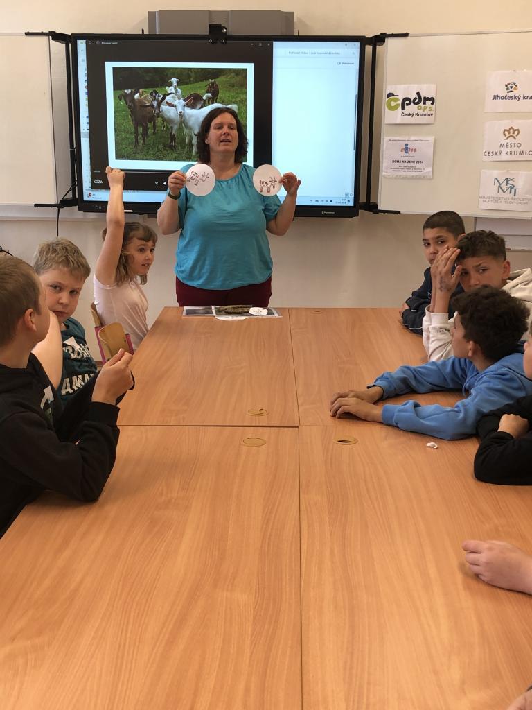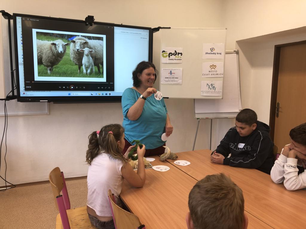 Žáci si zopakovali, jaká zvířata patří k těm hospodářským a také jak patří k sobě rodiny zvířat, samice, samec a mládě. U každé skupiny zvířat lektorka použila náhledové obrázky zvířat, jejich využití a také použila artefakty související s daným zvířetem (peří, rohy, stopy, vajíčka).