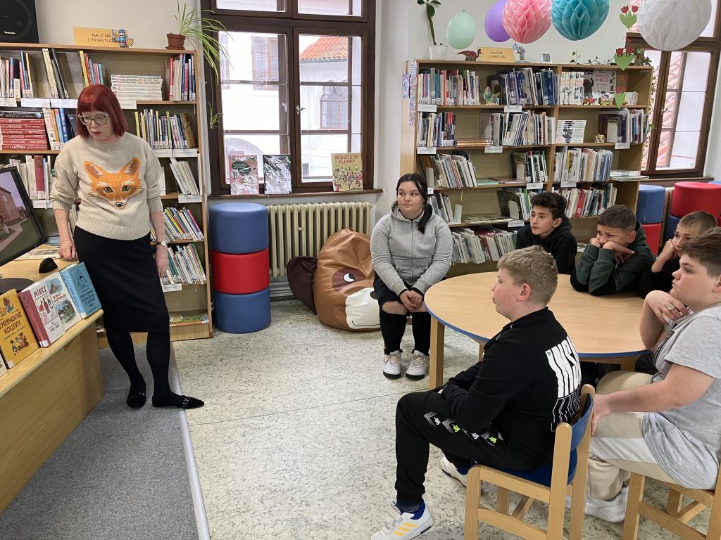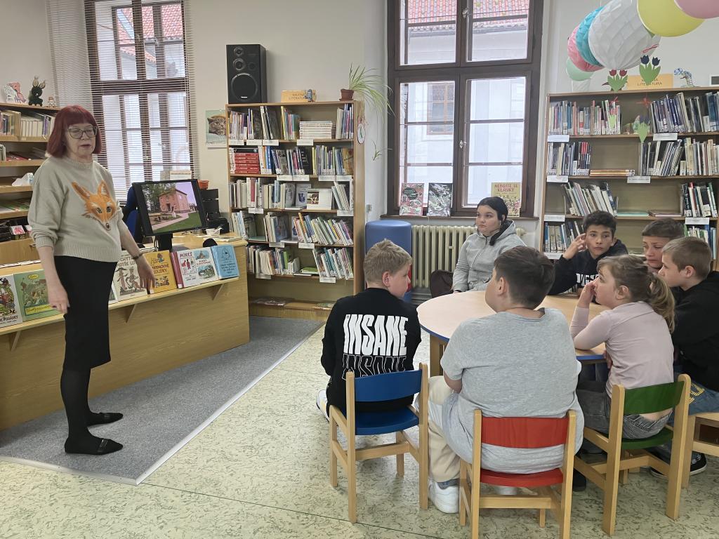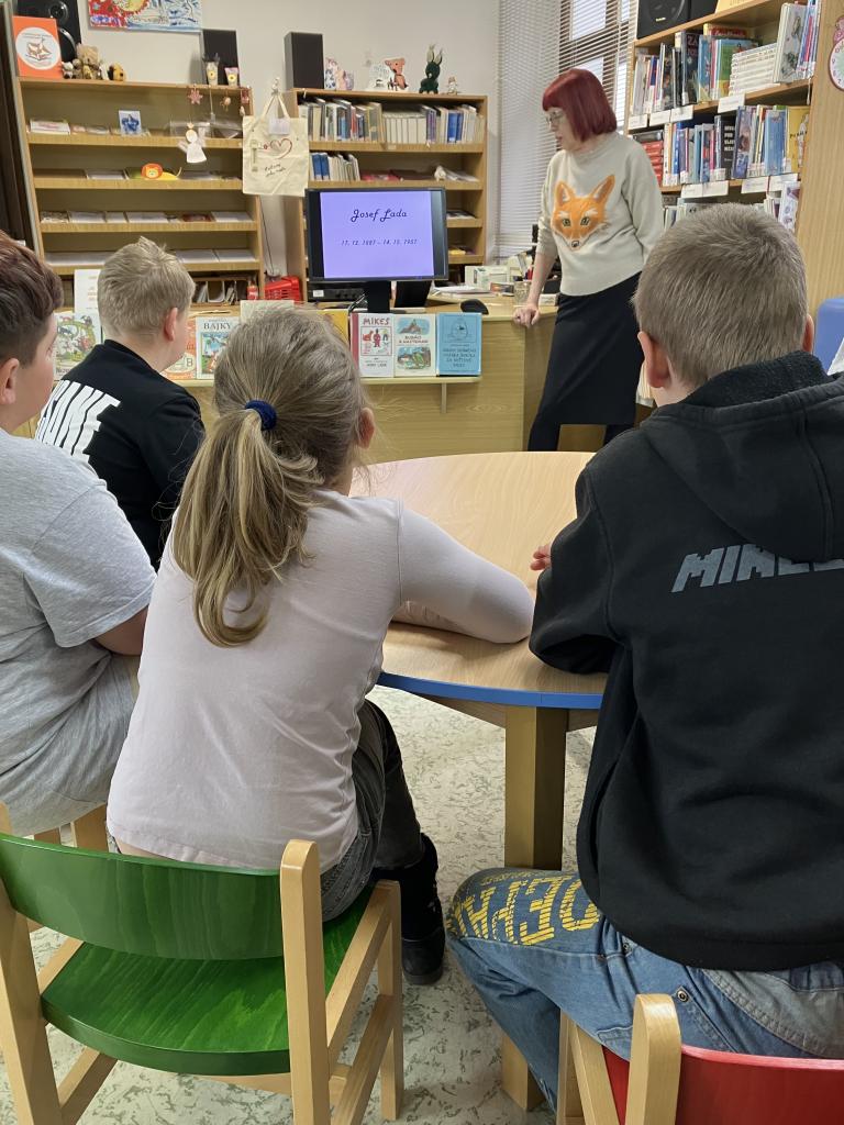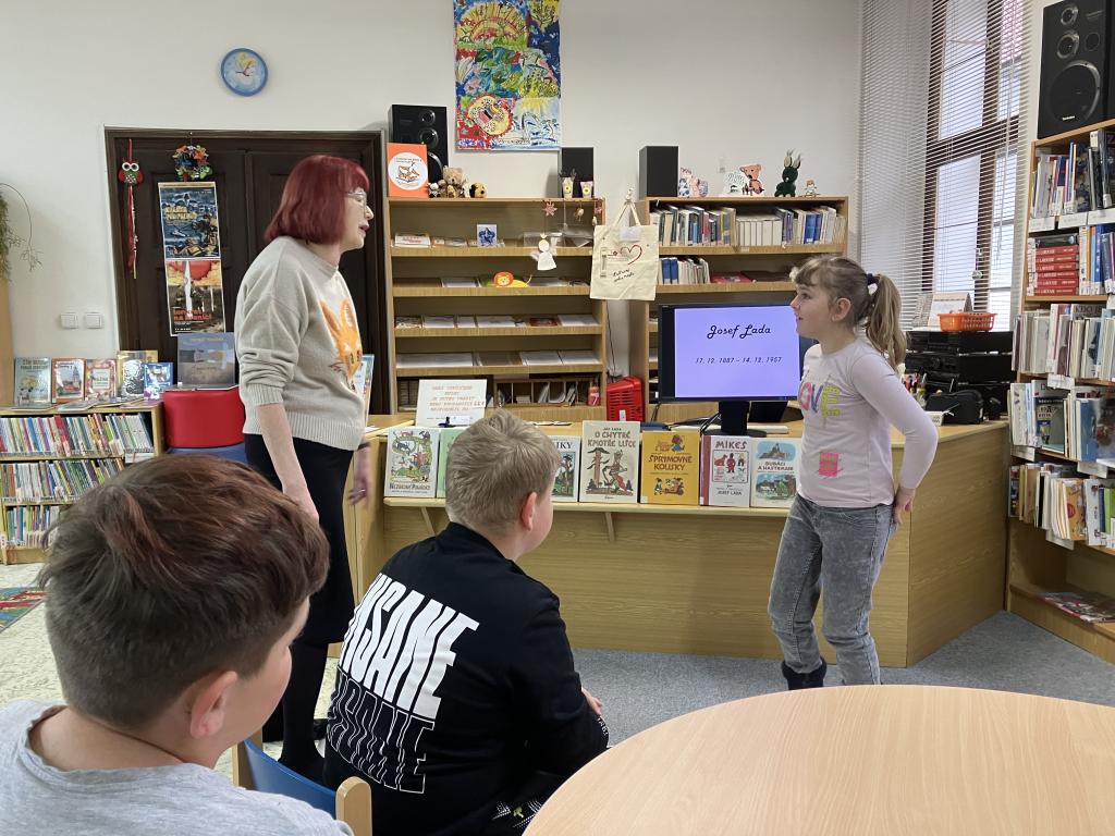 Žáci a žákyně se zúčastnili besedy v Knihovně ČK, kde si pro ně paní knihovnice Helena Jelínková připravila povídání o Josefu Ladovi. Podívali jsme se i na Kocoura Mikeše na pouti.