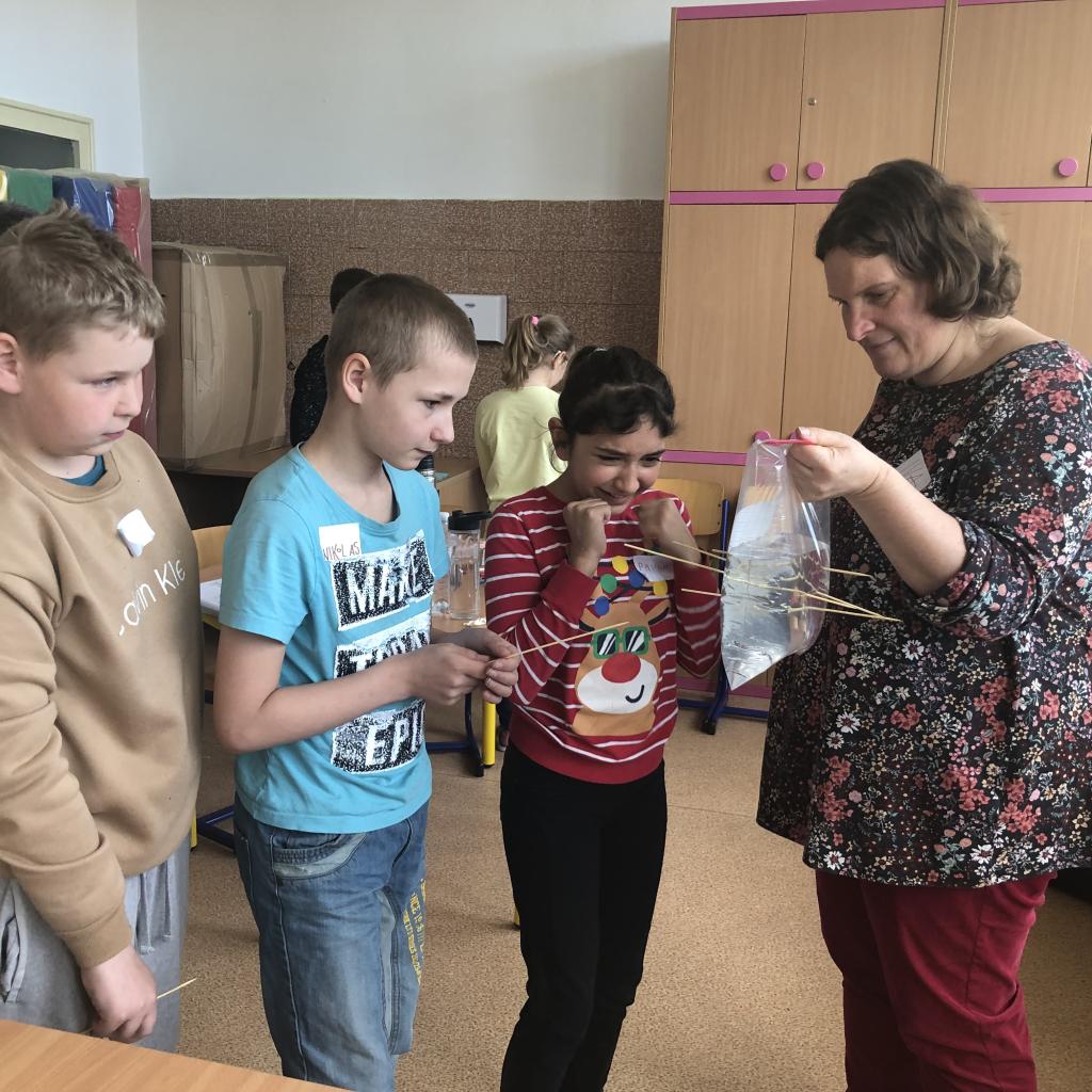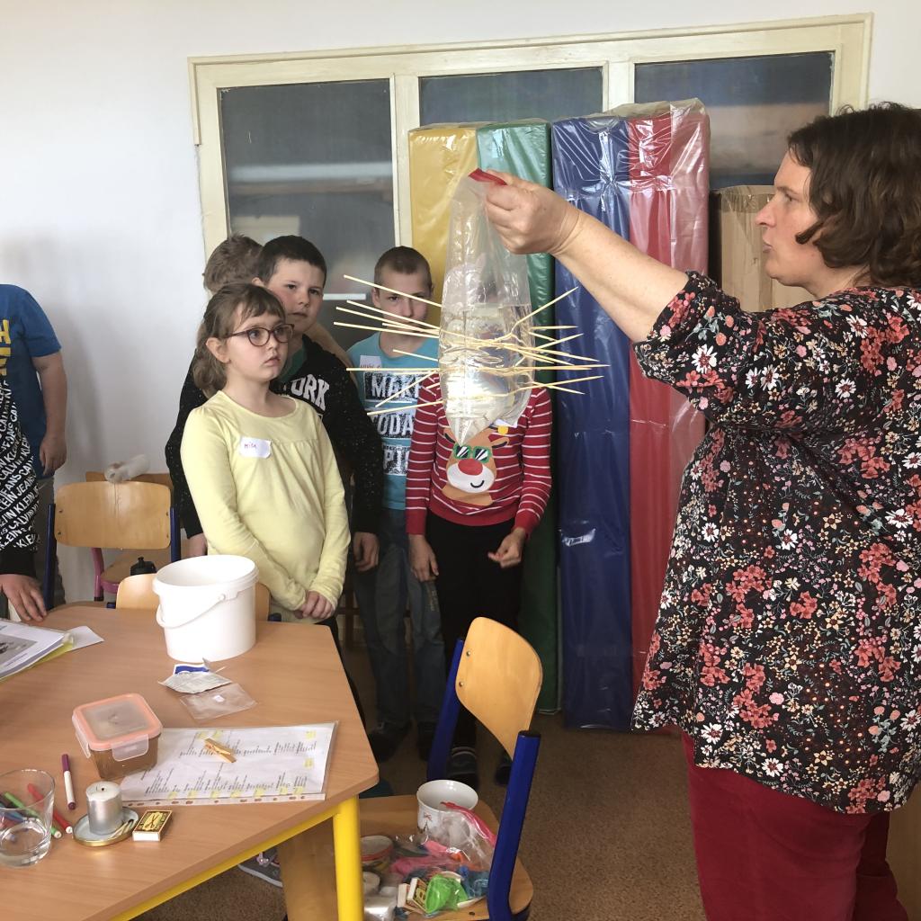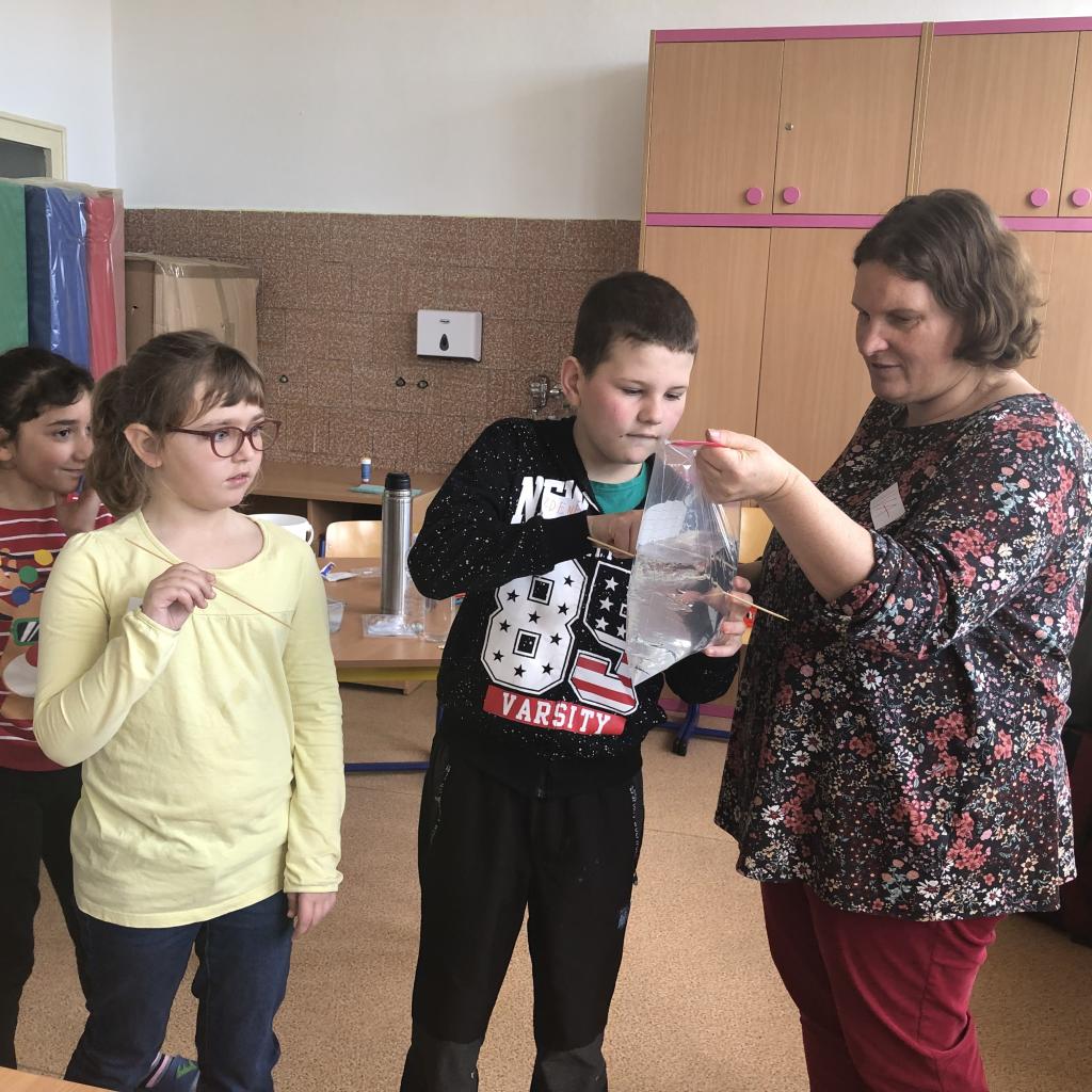 Žáci zažili pokusovou show. Zábavnou formou vyzkoušeli fyzikální jevy. Mnoho pokusů si mohou vyzkoušet i sami doma. Vyzkoušeli si, jak plocha předmětu ovlivní, zda se předmět potopí, nebo jak rozvinout papírovou kytku ve vodě.