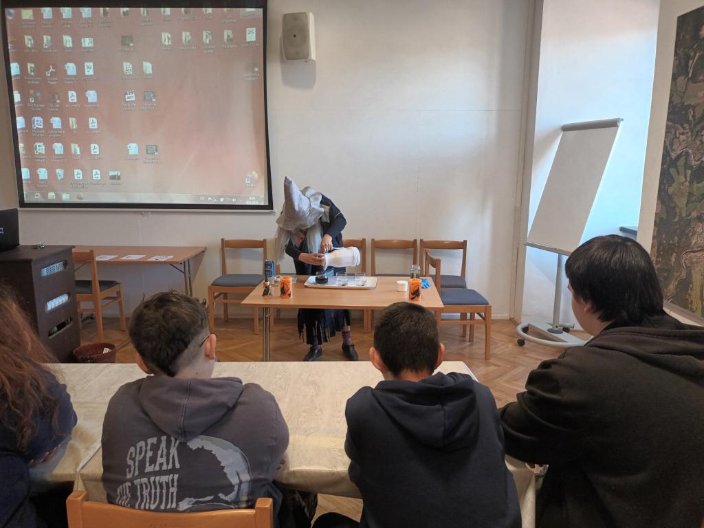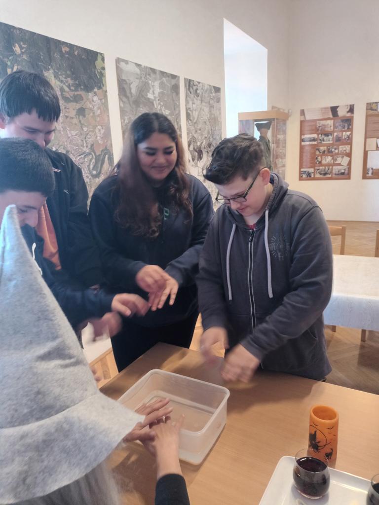 V pátek 26.4. šli žáci osmé třídy do Muzea ČK, které se na jeden den proměnilo v čarodějnickou sluj. Nejprve si děti vyslechly přednášku a historii čarodějnictví, poté ochutnaly nejrůznější druhy bylinek babky kořenářky, seznámily se s netopýry, shlédly zajímavá kouzla, a nakonec si vyčarovaly amulet pro štěstí.