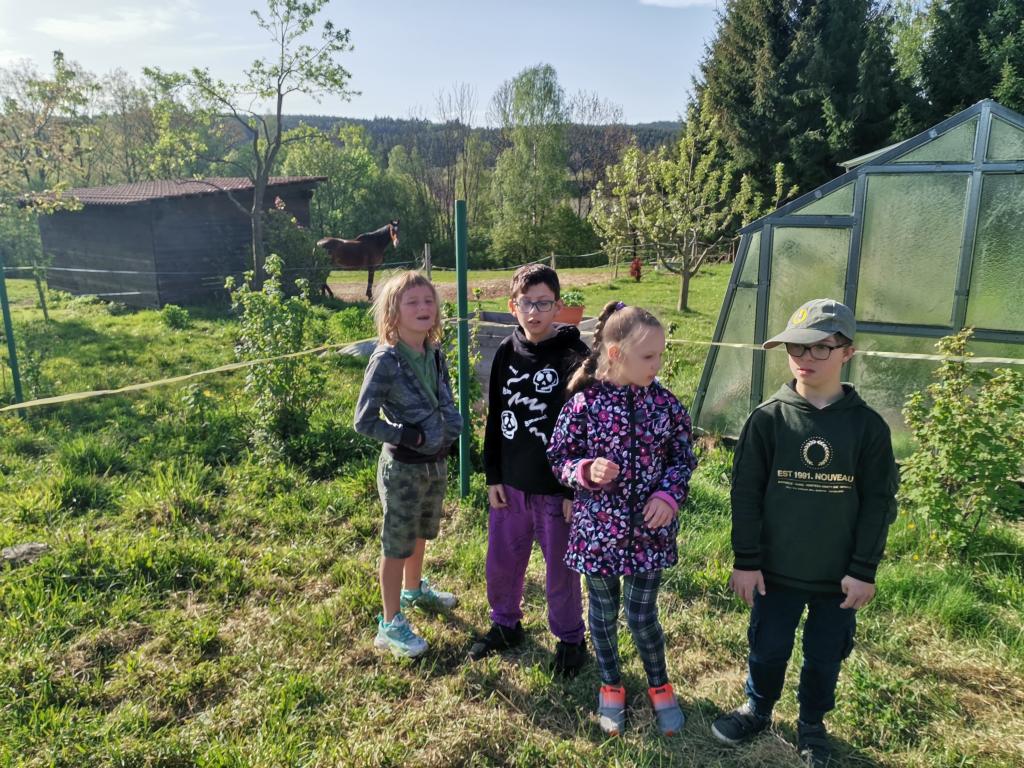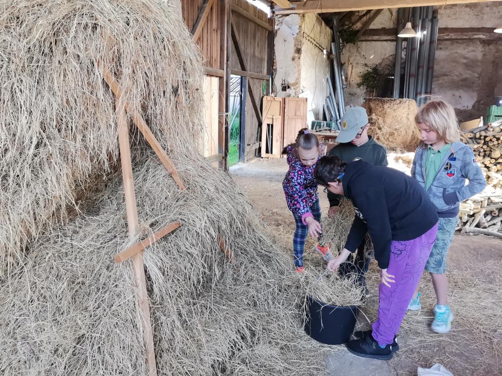 Děti se seznámily s vesnickými zvířaty jako jsou slepice, křepelky, králíci, kocouři, koně, ale setkaly se i s netypickými zvířaty, jako je agama či činčila. Zvířata si děti mohly pohladit, některé i vzít do ruky, nakrmily je, daly jim vodu, podestýlku. Den jsme si moc užili. Na závěr každý namaloval zvíře, které se mu nejvíce líbilo.