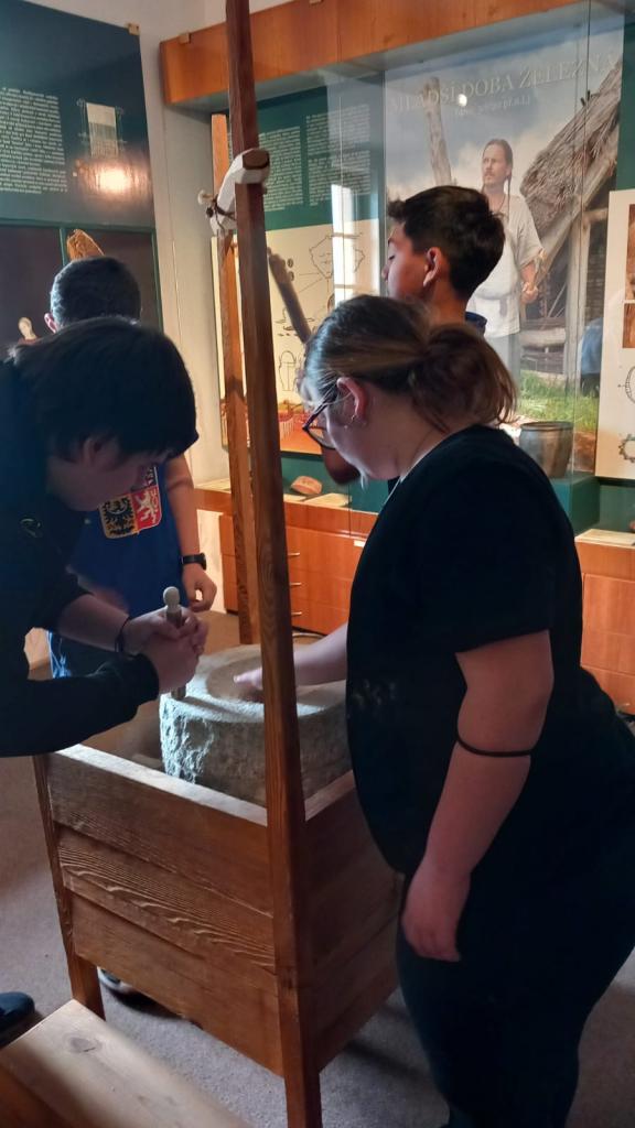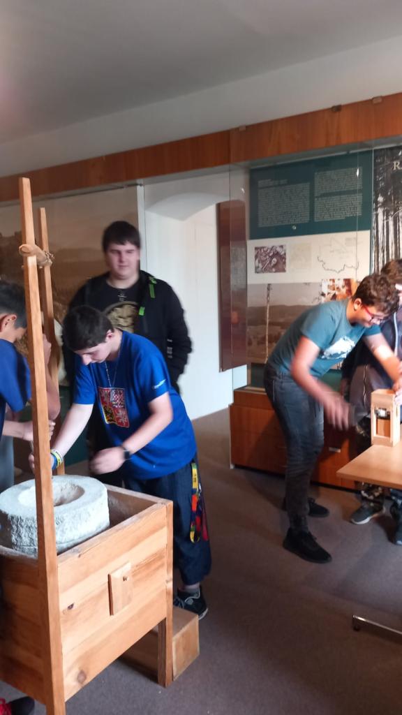 Ve čtvrtek 16.5. se osmá třída vydala na přednášku do Muzea ČK. Program Za cechy a řemesly seznámil žáky s tím, jak se řemeslo ve městě rozvíjelo, která řemesla zanikla a která zůstala do dnes. Žáci si vyzkoušeli, jak se mele mouka. Nejprve na kameni jako v pravěku a poté na mlynářském kameni ve stroji. Vlastnoručně umletou mouku si nakonec odnesli i domů.
