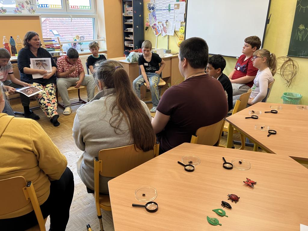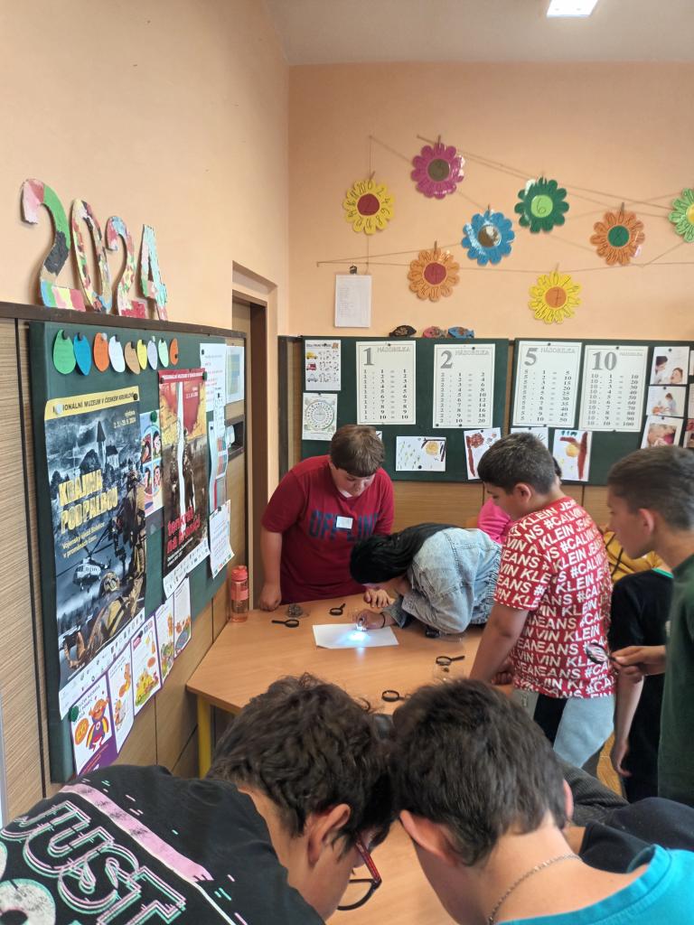 V pondělí 10.6.2024 se žáci účastnili workshopu od Ivy Sonnenbergerové. Tentokrát na téma Louka. Mohli pozorovat hmyz pod mikroskopem, zkoumat sršně pod lupou a dozvěděli se i názvy rostlin, které lze na loukách najít.