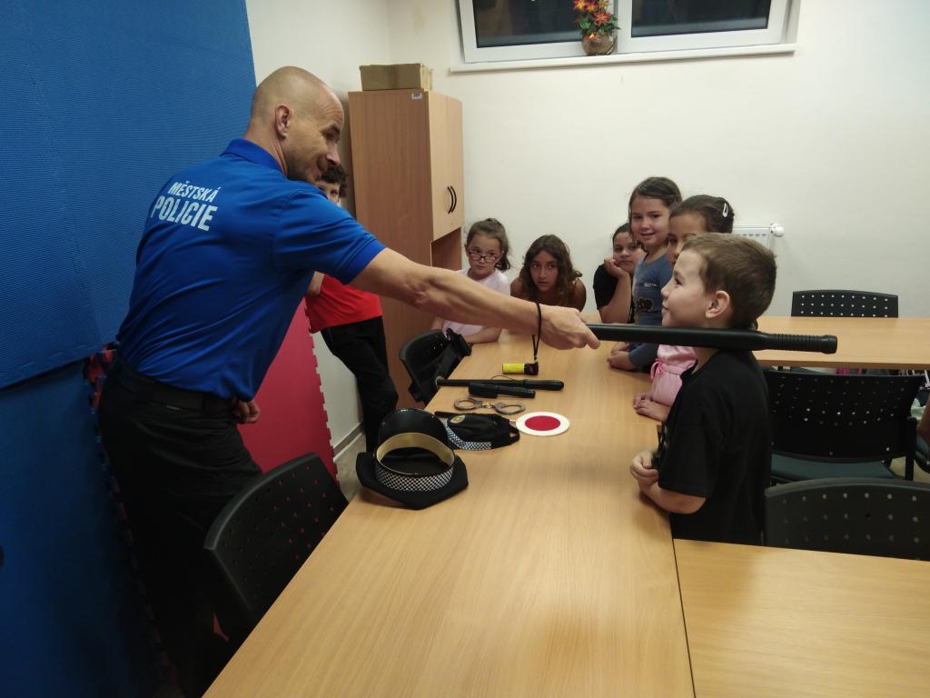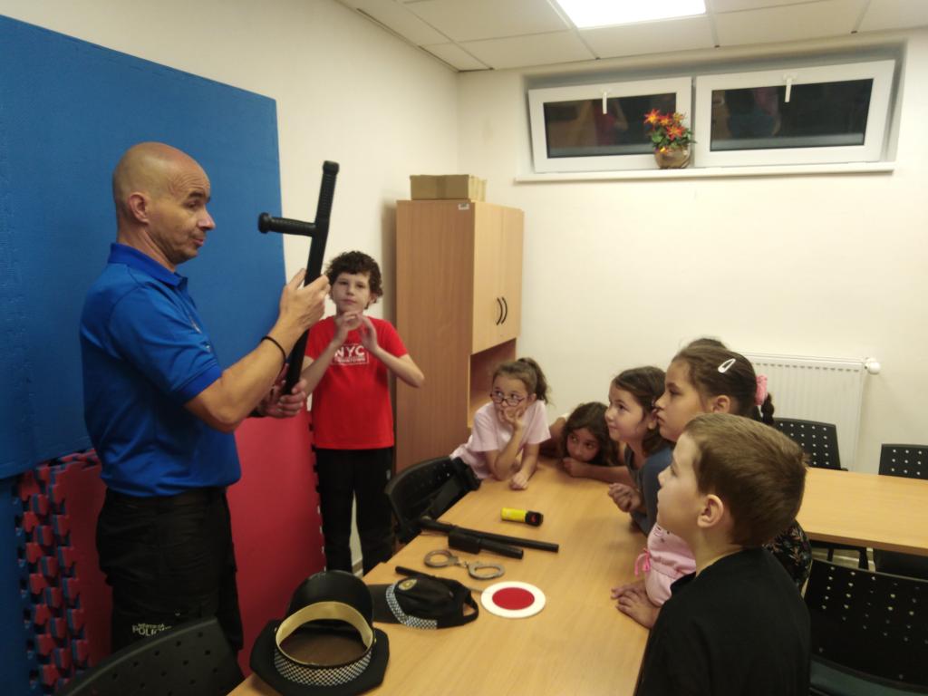 V úterý 24.9.2024 se IV. třída vydala na služebnu Městské policie Český Krumlov, kde se zúčastnila vzdělávacího programu Den na služebně. Žáci se seznámili s prací policistů, prohlédli si různé zbraně. Vyzkoušeli si, jaký je to pocit, mít na rukou pouta a být zavřený v cele předběžného zadržení. Dále zkoušeli střílet na terč a chodit s brýlemi simulujícími opilost. Pan Šebela nám ukázal i kamerový systém a umožnil dětem posadit se do služebního vozu a zahoukat. Domů si děti odnesly drobné dárky.