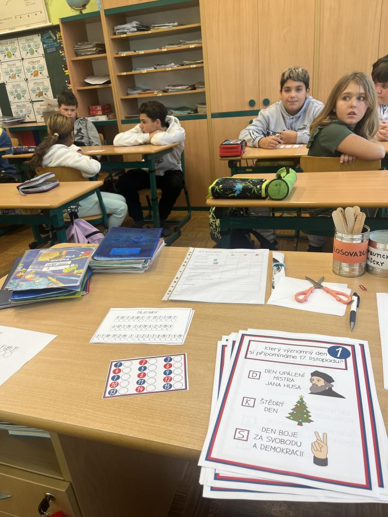 V pondělí 18. 11. 2024 si žáci V. třídy připomněli události 17. listopadu 1989. Zažili sametovou stezku – formou kvízu jsme si povídali o tom, jak se v naší zemi rodila svoboda.