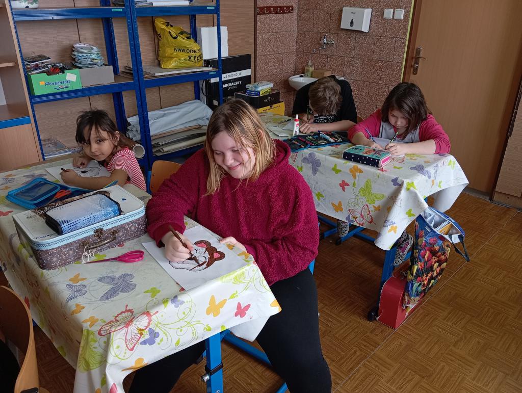 V úterý 4. 3. jsme si s dětmi nejprve popovídali o Masopustu, vysvětlili jsme si jeho symboliku. Ukázali jsme si video masopustního průvodu u nás v Českém Krumlově. Pak jsme se rozdělili do skupin a střídali se v různých dílnách. Smažili jsme masopustní koblížky, vyráběli škrabošky a koláčky ze zažehlovacích korálků. Den jsme si užili.
