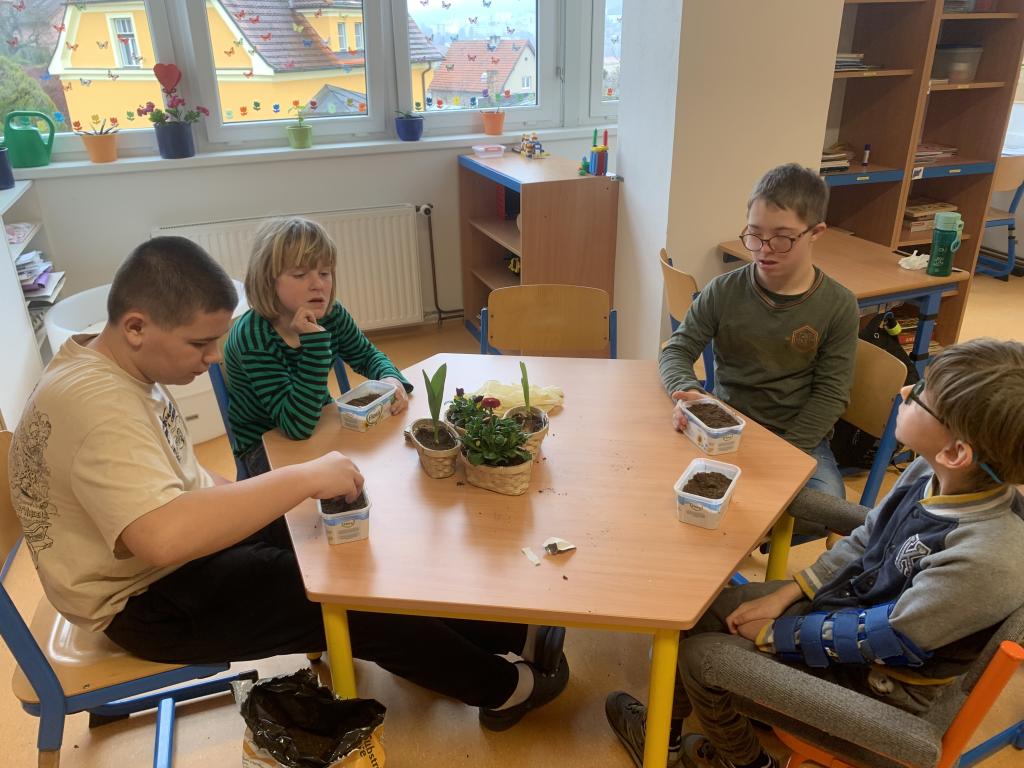 V pátek 14. 3. 2025 jsme si povídali o blížícím se jaru. Pracovali jsme s obrázky, pexesem apod. Vyzdobili jsme paletu plnou květin. Zahráli jsme si šipkovanou s jarními úkoly. Zasadili jsme semínka rajčat. Den jsme si hezky užili.