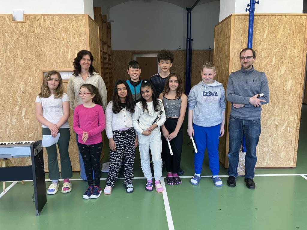V pondělí 14. 4. 2025 jsme se všichni potěšili krásným uměleckým zážitkem, který nám darovali žáci a žákyně naší školy, již navštěvují výuku hry na flétnu v SZUŠ Natanael působící na naší škole. Poslechli jsme si několik skladeb s doprovodem klavíru. Byli jsme velice mile překvapeni, jak moc se naši malí umělci zlepšili a jaký udělali pokrok. Těšíme se na další koncert na konci školního roku.