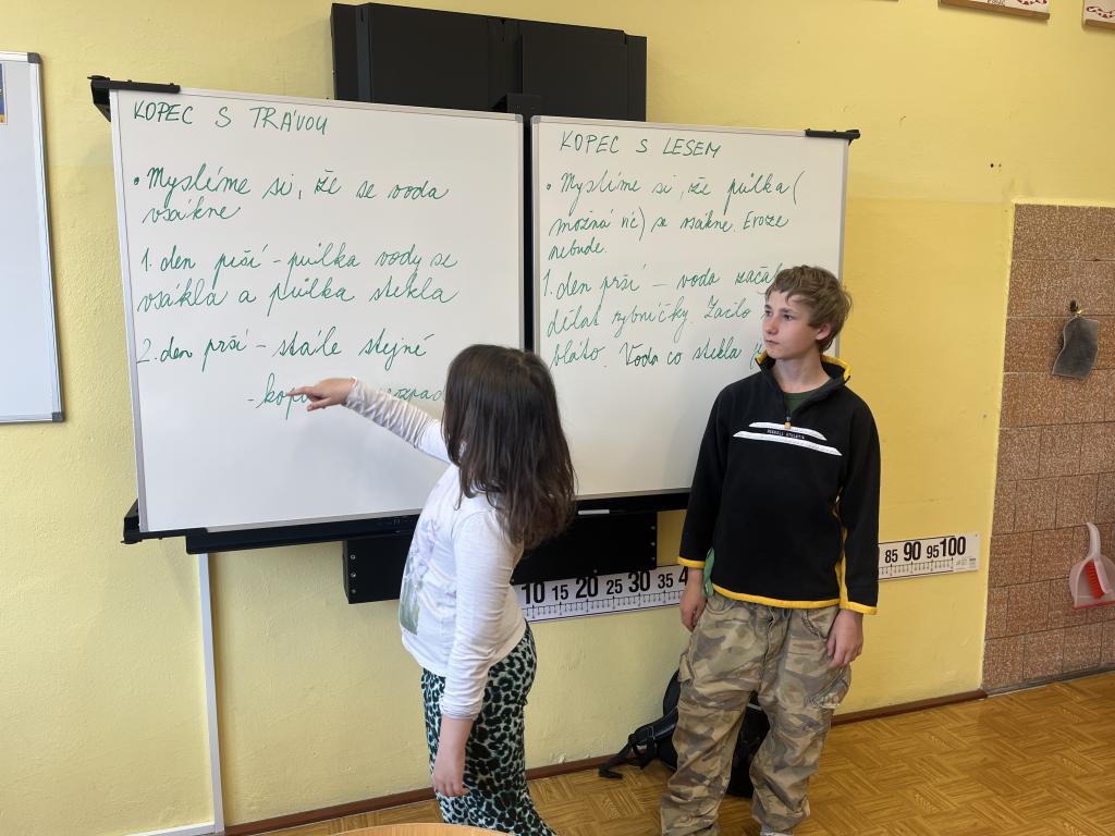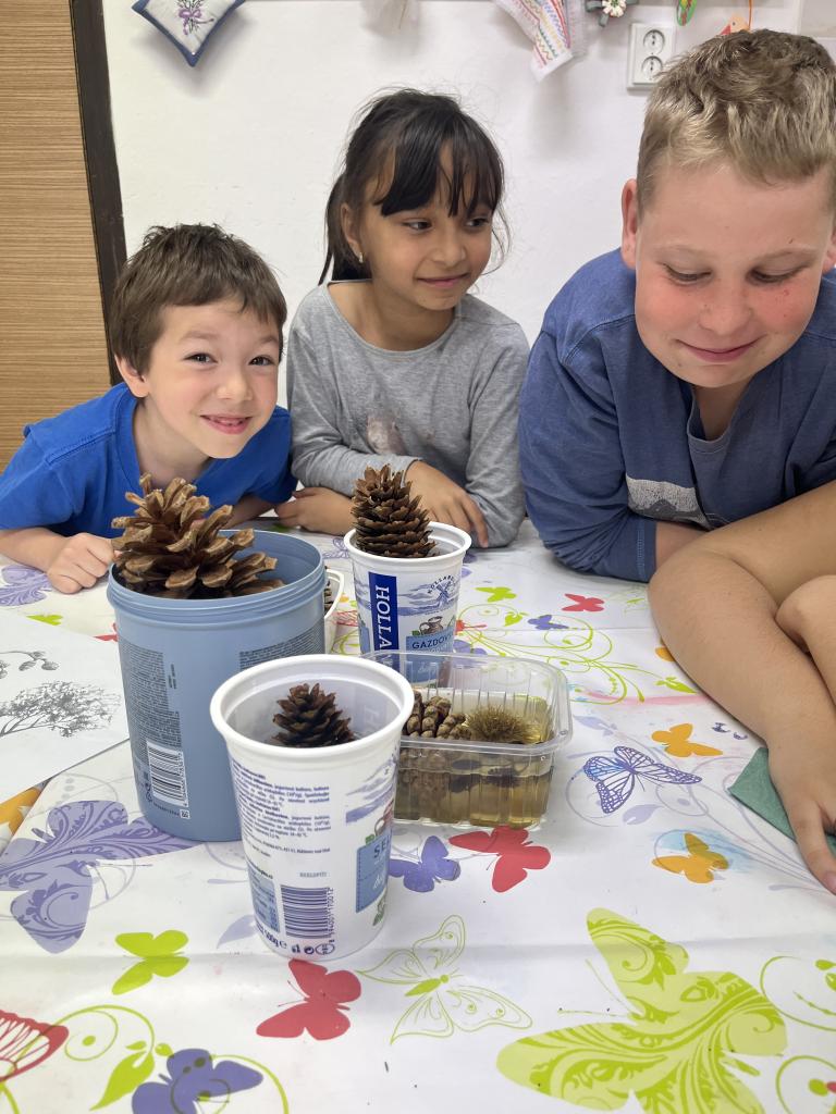 V pátek 25.4.2025 jsme společně oslavili den Země. Děti krásně zvládly přijít na to, co je pro Zemi důležité a bez čeho by nebyl život. Ve smíšených skupinách se pustili do badatelských úkolů, které na závěr všichni krásně prezentovali. Zjistili, co se stane s přírodninami ponořenými do vody, jaké jsou pohyby větru, jak se filtruje voda a co se stane s půdou, když přijde voda. Nejvíce se líbil pokus se šiškou.