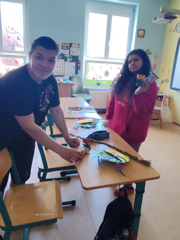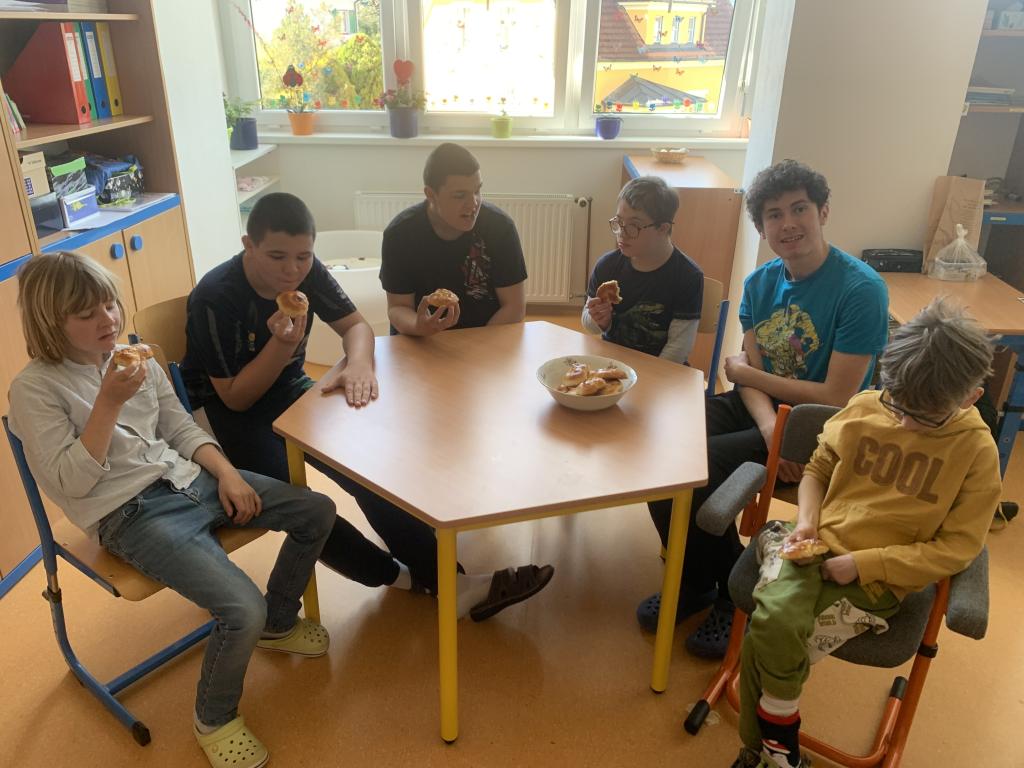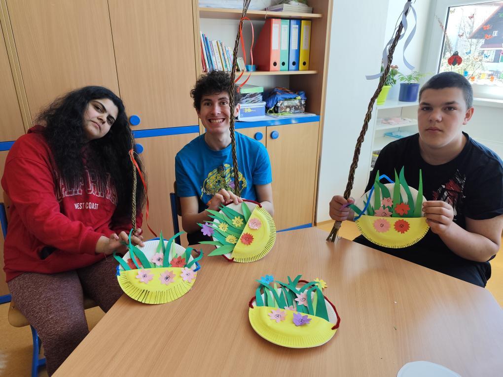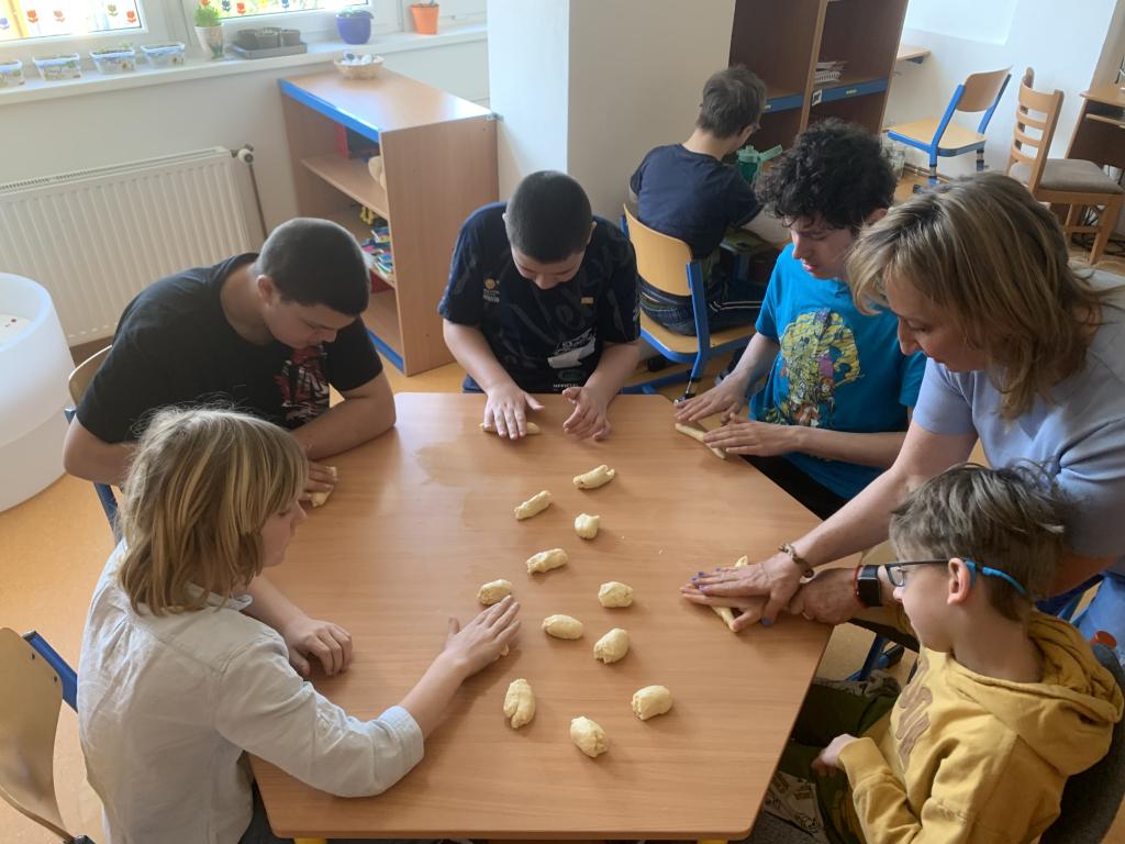 Ve středu 16. 4. 2025 jsme si před blížícími se velikonočními svátky povídali o zvycích a tradicích. Upletli jsme si pomlázky, upekli jidáše a také je rovnou ochutnali. Uvařili jsme vajíčka v cibulových šlupkách a pozorovali jejich krásné zbarvení do hněda. Hledali jsme velikonoční vajíčka a také si vyrobili barevné košíky. Na velikonoční prázdniny odcházeli žáci s radostnou náladou.
